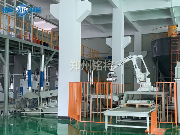 蘇州鴻川建築材料有限公司全自動幹粉砂漿生(shēng)產線、自動(dòng)包裝輸送碼垛生產線由鄭州銘將承建。本套生產線與其它生產線不同的是(shì)采用了氣體(tǐ)輸送,另外增添了自動輸送和碼垛係統。
